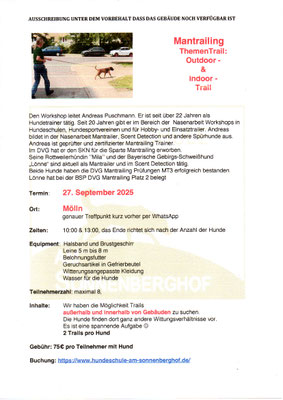 Der Workshop mit Andreas Puschmann richtet sich an Mantrailing Teams, die ihr Wissen über GA verbessern wollen.