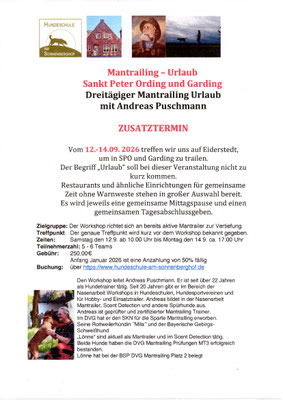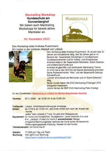 Zielgruppe: bereits aktive Mantrailer zur Vertiefung ihrer Kenntnisse